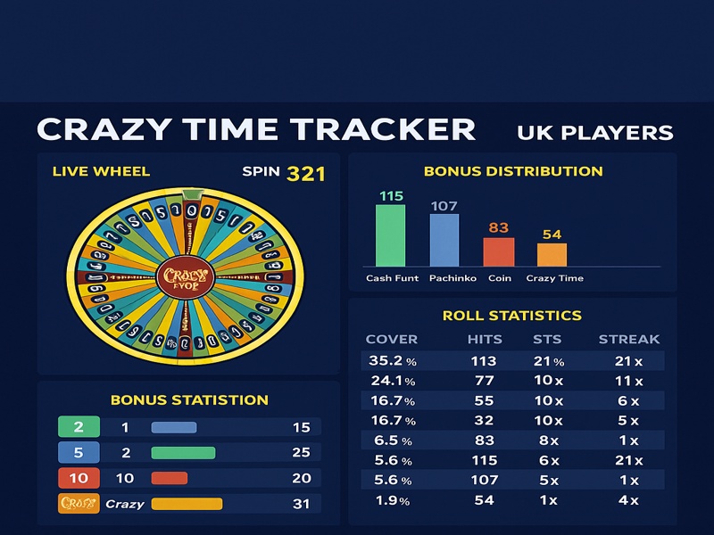 Crazy Time stats are data records showing wheel outcomes, bonus round frequency, multipliers achieved, and other gameplay metrics. Our tracker collects this information in real time, allowing players to view spin history, analyse patterns, and see how actual results compare to theoretical probability.